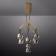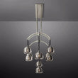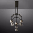 Inspired by the architectural elegance of 12th-century flying buttresses, the fixture's graceful armature lifts up hemispheres of cross-cut glass. These hemispheres, created from solid crystal blocks and meticulously polished by hand, beautifully contrast the delicate arc of the solid brass frame. This composition presents a captivating balance between stability and fragility, an interplay of strength and grace. As an installation, the fixture forms a luminous canopy that bathes the surroundings in a gentle radiance. |